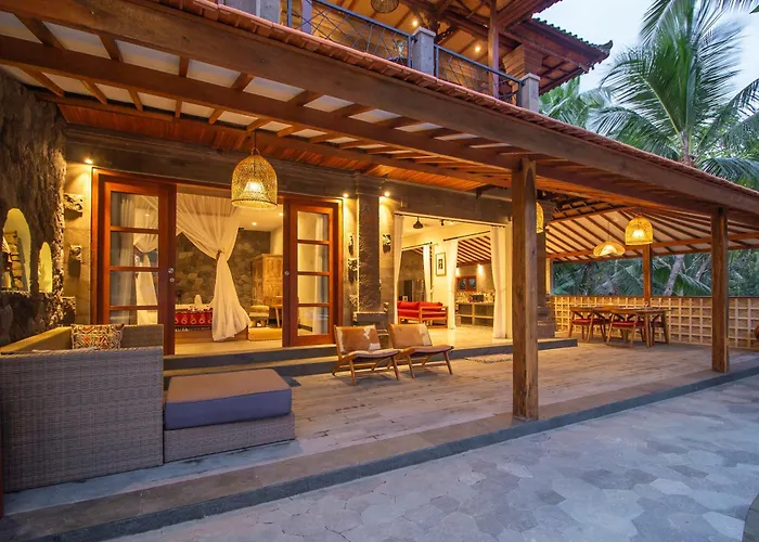 Se puede llegar al aeropuerto internacional de Bali Denpasar en 38 minutos en coche, y atracciones naturales como el Bosque de los Monos de Ubud están a 4 km. Entre los lugares de interés cultural de los alrededores se encuentra el Museo del Renacimiento de Blanco, situado a 3 km. Situado a tan solo 200 metros del Three brother balinese painting, la villa está a una distancia de 3 km de lugares de compras como el Mercado de Ubud.